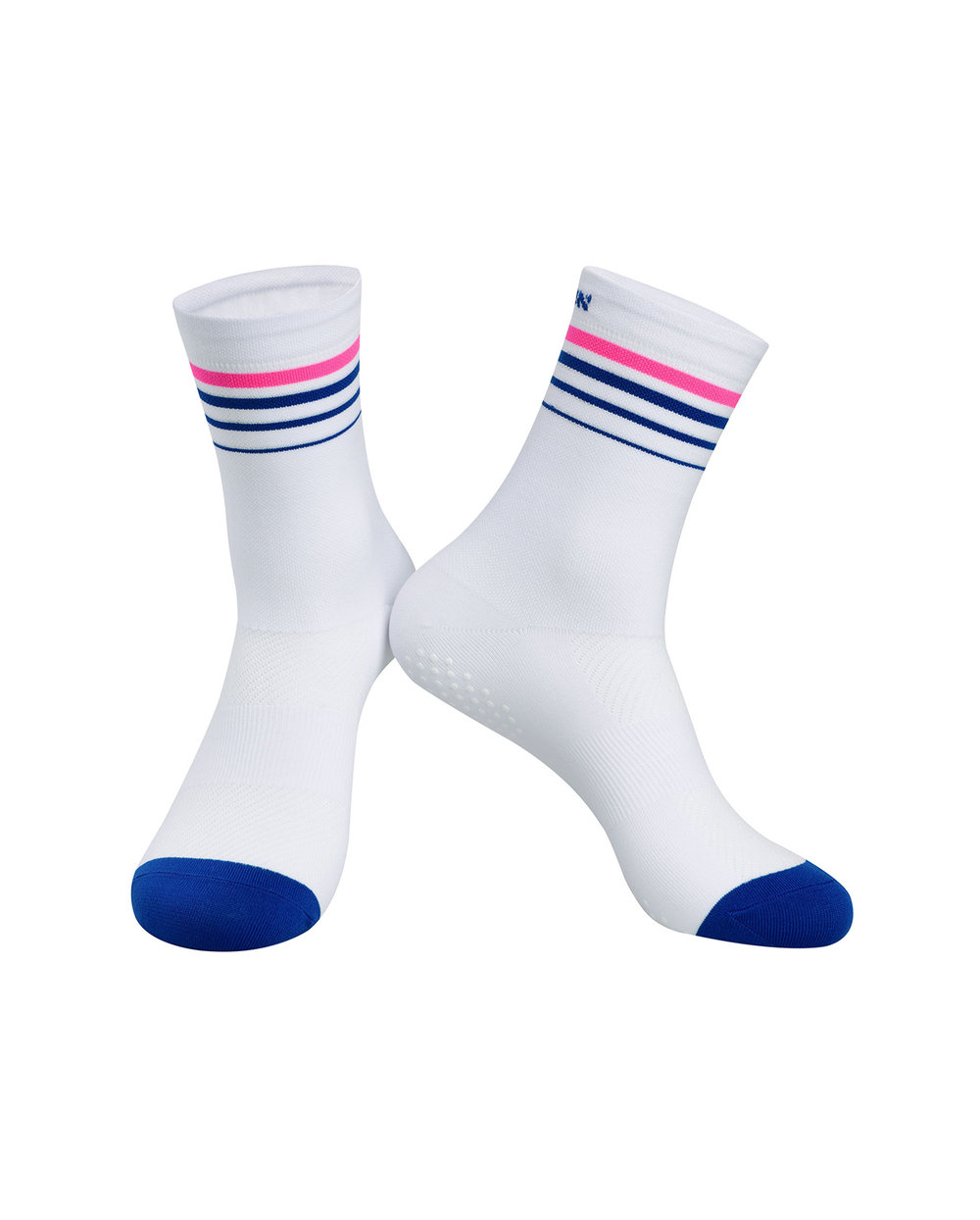 Κάλτσες συμπίεσης για ποδήλατα από ανθεκτικά υλικά που απορροφούν την υγρασία. Οι κάλτσες έχουν υπέροχο σχέδιο με ρίγες και ζώνη σιλικόνης που εμποδίζει την ολίσθηση κατά τη διάρκεια της κίνησης. Κατάλληλες και για άλλα αθλήματα.